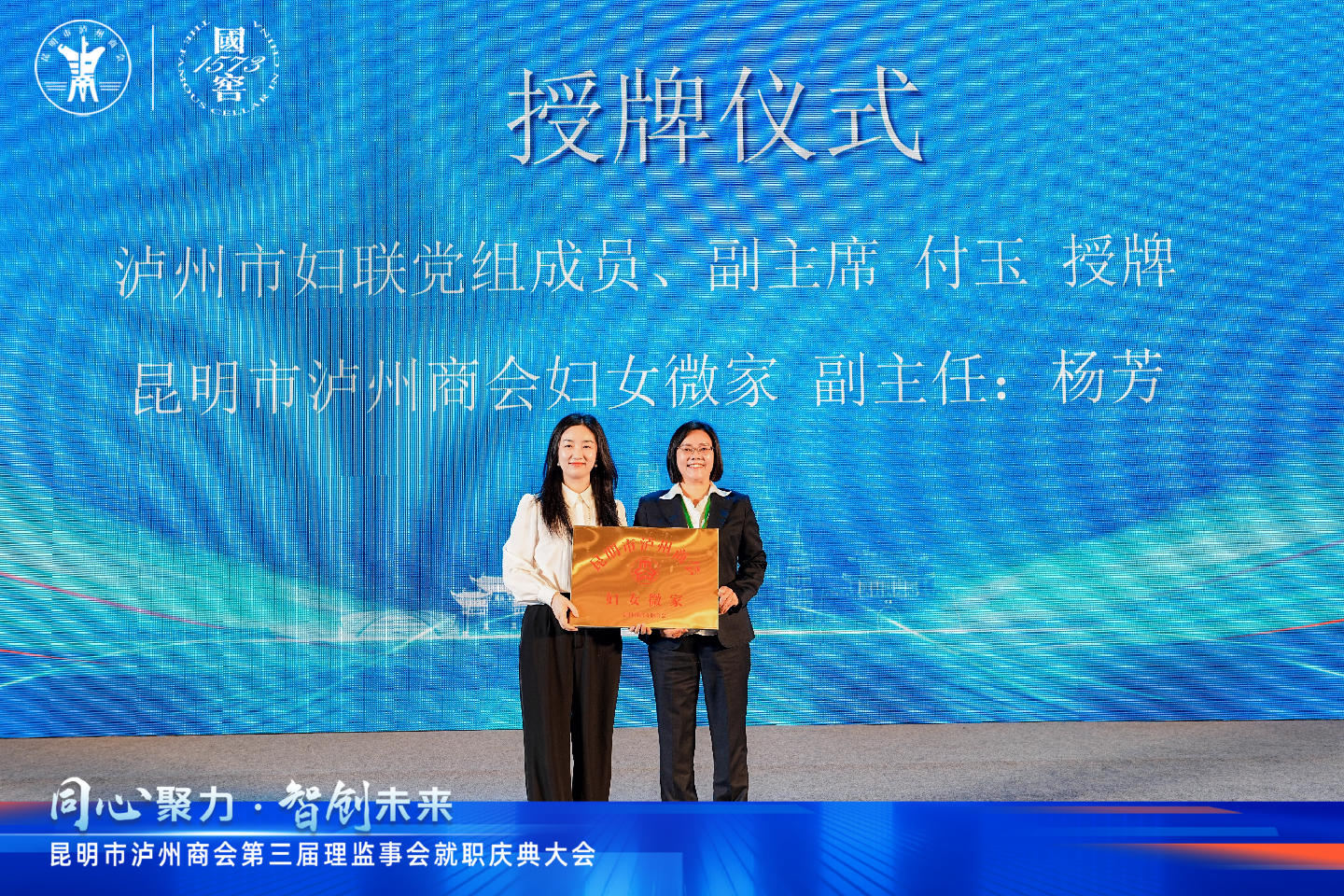 近日,昆明市泸州商会第三届换届选举大会在昆明市举行。会上,泸州市妇联为昆明市泸州商会妇女微家进行授牌。